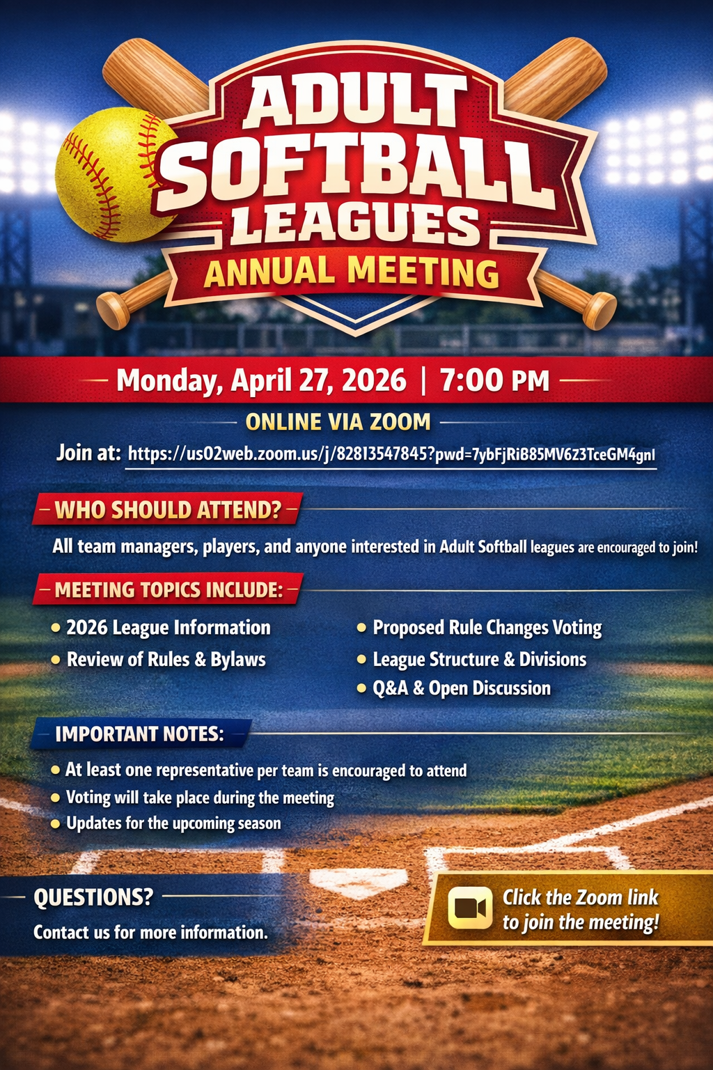 Fall Softball Team Registration deadline in Friday August 15. After August 15 if your team is accepted there will be a $25 late fee added.